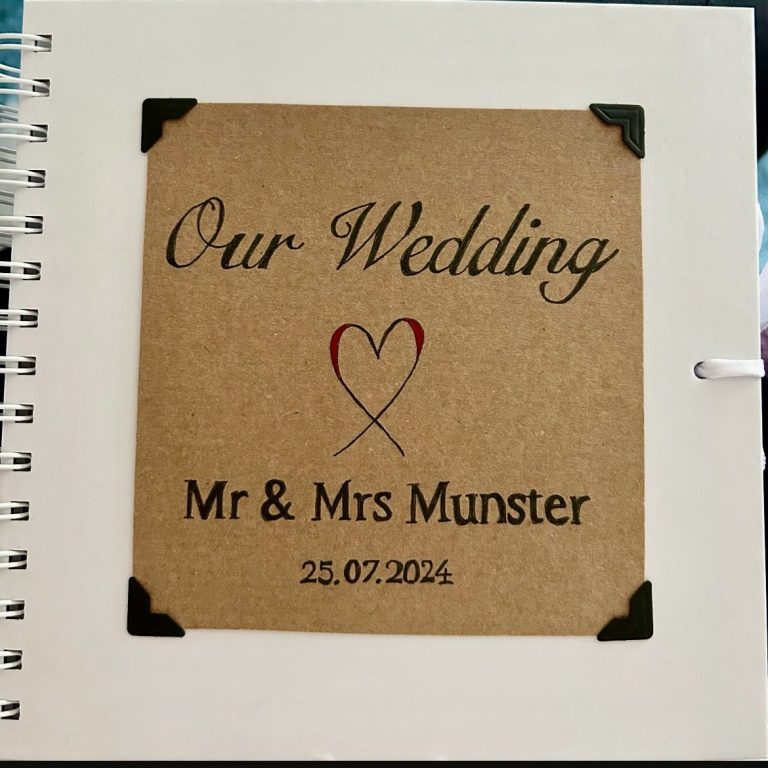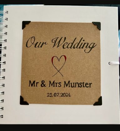 I got the photo's printed using the snapfish app and got a load of them for free, probably 90% of the photo's I used were free. I then bought the white scrap book and photo corners from Amazon and finished it off with a handmade front cover using card and pens.